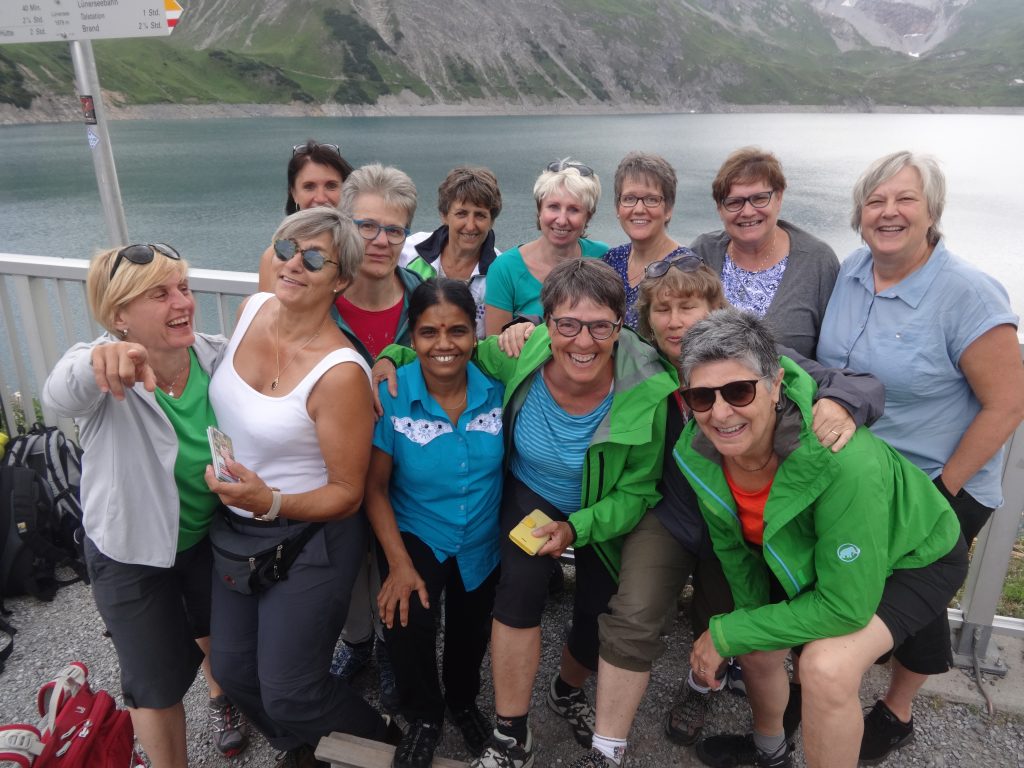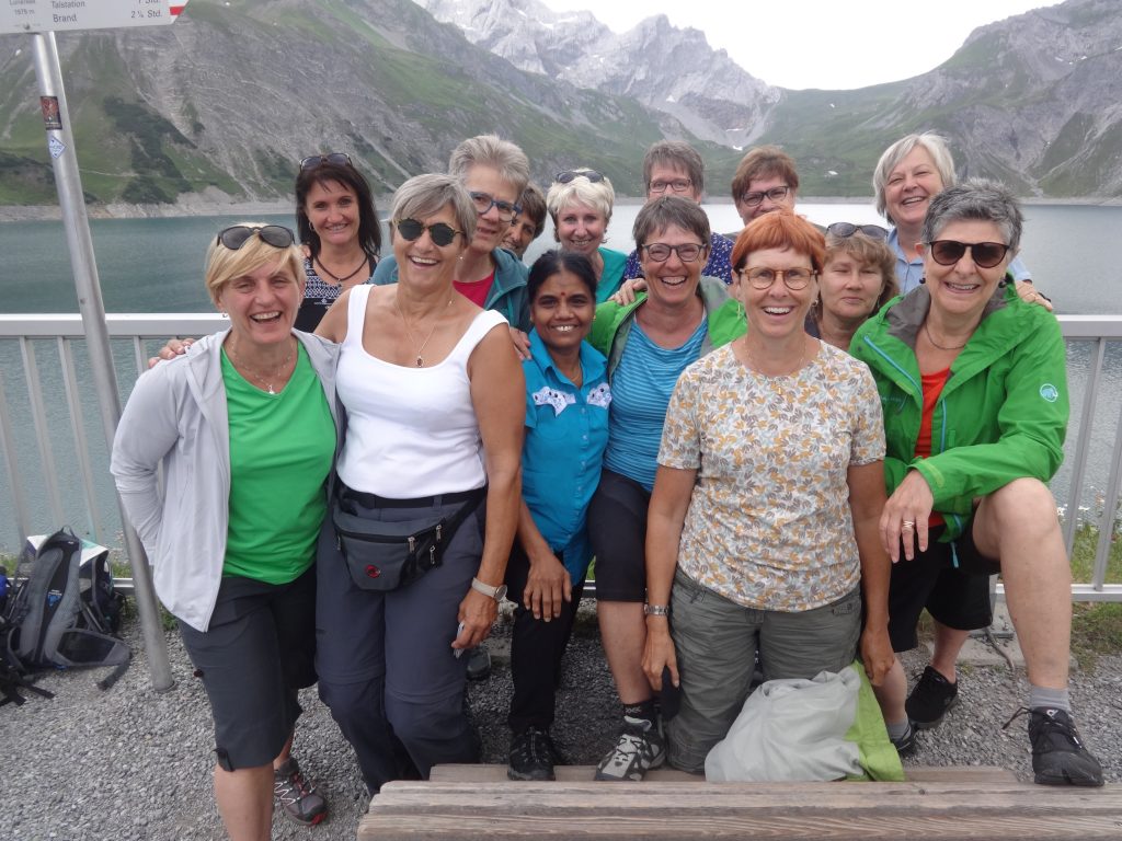 Mal etwas Neues ausprobieren, deshalb fand der diesjährige Ausflug mitten in den Sommerferien statt. Das Echo war gross und 14 Frauen fanden sich am Reisetag in Rebstein am Bahnhof ein. Geplant war die Reise mit dem Zug via Buchs und Feldkirch nach Bludenz und weiter mit dem Postbus zur Lünerseebahn. Die Übernachtung war auf knapp 2000m in der Douglass Hütte geplant. Doch der Reihe nach zuerst führte uns ein kompetenter Stadtführer in Feldkirch mit seinen sehr interessanten und kurzweiligen Ausführungen durch die Altstadt. Nach dem gemeinsamen Mittagessen war der Nachmittag zur freien Verfügung, bevor der Zug uns weiter nach Bludenz brachte. Das Wetter war super schön und warm entgegen der Prognosen. Aber es sollte nicht bis Sonntagabend so sein, bereits gegen Abend wurden die Wolken am Lünersee dicker und dicker. Das tat jedoch der Stimmung in der Hütte keinen Abbruch und der Abend mit feinem Abendessen und lustigen Spielen war schnell vorüber. Am Morgen der Blick aus dem Fenster – dichter Nebel und vom See keine Spur. Aber was soll’s – raus aus dem Bett (die einen früher, die anderen später) – Morgenessen - Schuhe anschnallen und raus ging‘s. Die Wanderung um den See wurde unter die Füsse genommen oder für einige wenigstens ein Teilstück. Für die Regenerprobten Läuferinnen um den See gab’s als Belohnung auf halbem Weg auf einer Alphütte Kafi und Schnaps. Kurz nach Mittag waren dann aber doch alle froh, wieder in der Hütte zu sein, um sich der nassen Hosen zu entledigen. Der Regen hatte sich in der Zwischenzeit so richtig ausgetobt. Nach dem Mittagessen brachte die Seilbahn alle wieder runter ins Tal und der Rückweg mit Postbus und Zug nach Rebstein konnte starten. Der kurze Kafihalt in fand in einem sehr schönen, alten Gasthaus statt. Besonders der Besuch der Toiletten lohnte sich, das mussten einfach alle gesehen haben! Es war ein tolles Wochenende und die Organisatorinnen für die nächste Reise sind bereits (fast freiwillig) bestimmt. Danke an alle.